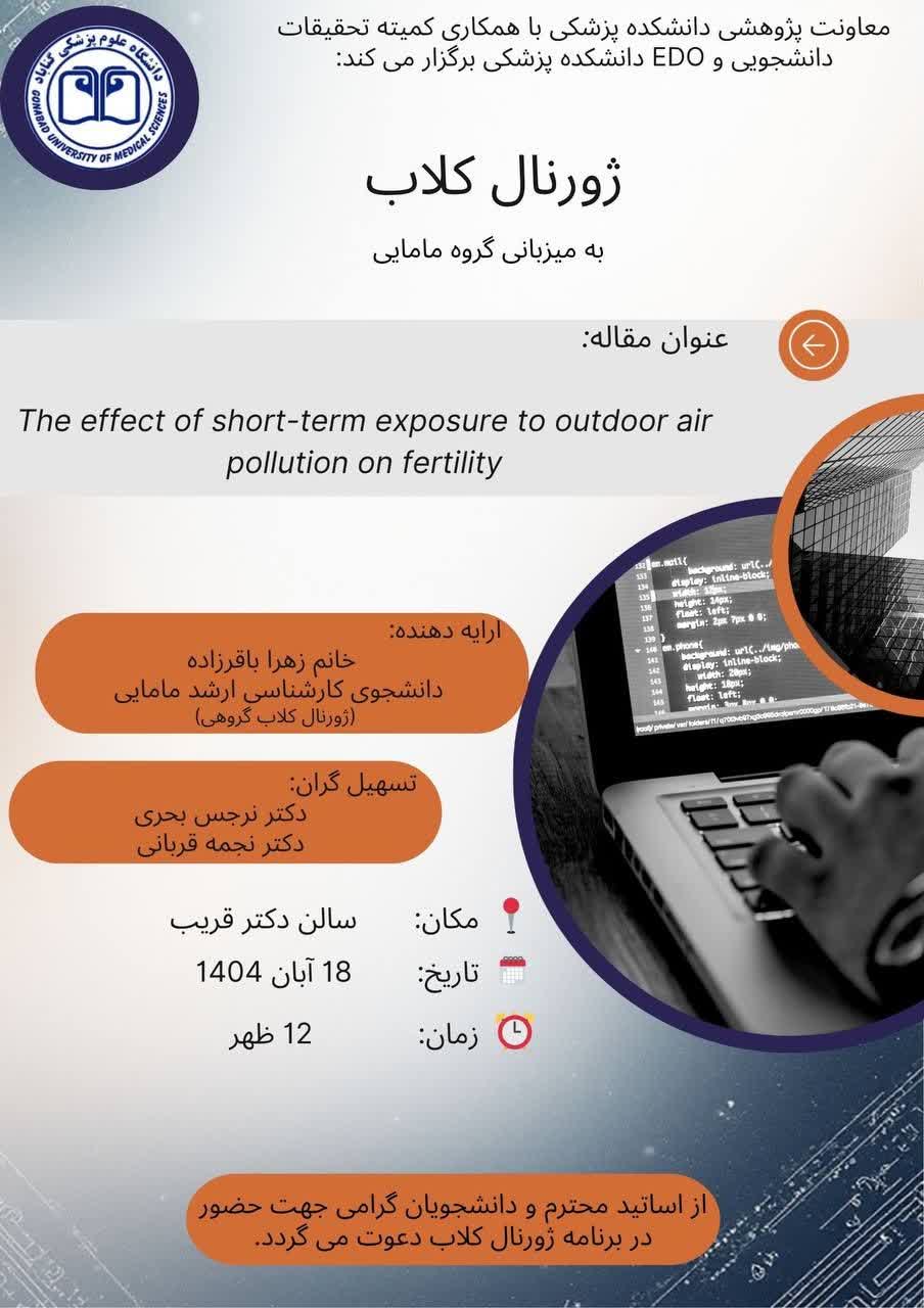 ژورنال کلاب The effect of short term exposure to outdoor air pollution on fertility