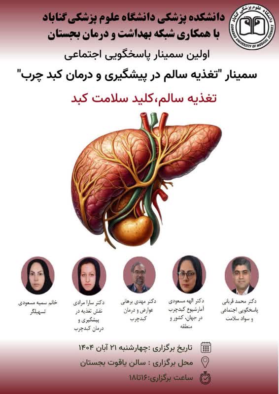 اولین سمینار پاسخگویی اجتماعی با موضوع کبدچرب به میزبانی شبکه بهداشت و درمان شهرستان بجستان، با حضور پزشکان، متخصصین، و پرسنل حوزه سلامت و همشهریان به منظور افزایش آگاهی عمومی درباره بیماری کبد چرب و تشویق به پیشگیری از آن برگزار گردید.در این نشست، متخصصین به بررسی عوامل خطر، نشانهها و روشهای درمان این بیماری پرداختند.